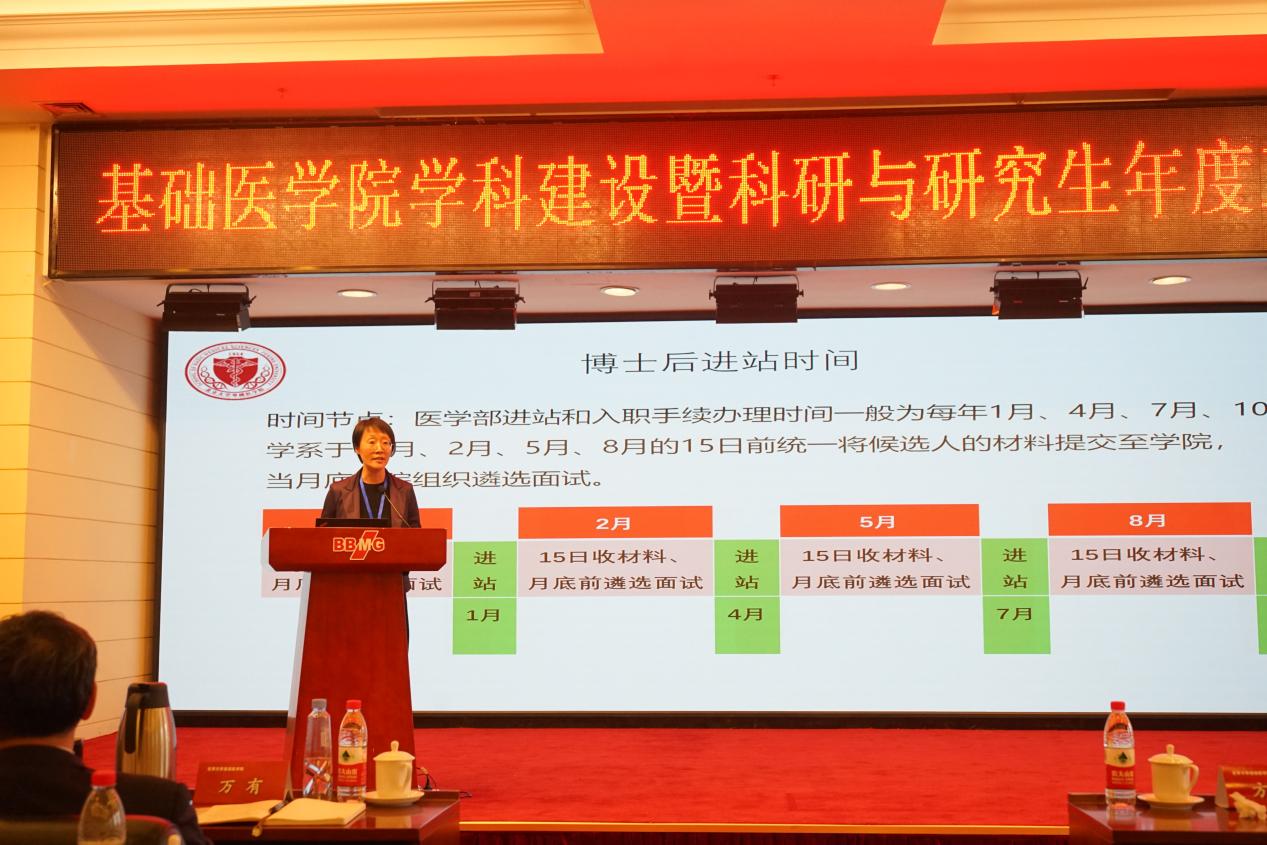 院办公室主任石爽就《医学部博士后研究人员管理工作实施办法》做报告,对在博士后管理工作中出现的问题进行了分析,并提出改进措施。